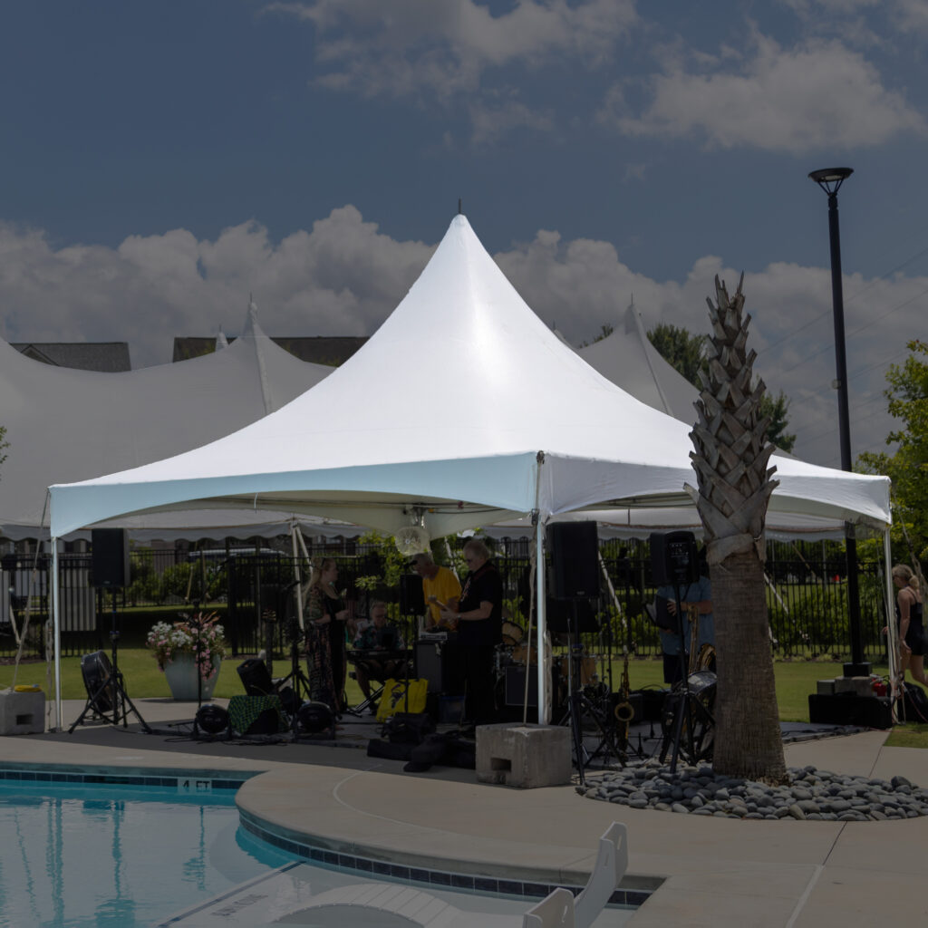 The 20×20 High Peak Frame Tent adds style and reliable shelter to medium-sized events. Its graceful high-peak design stands out at weddings, festivals, and private celebrations. The elevated center creates a bright, open feel while maximizing usable space beneath the canopy.