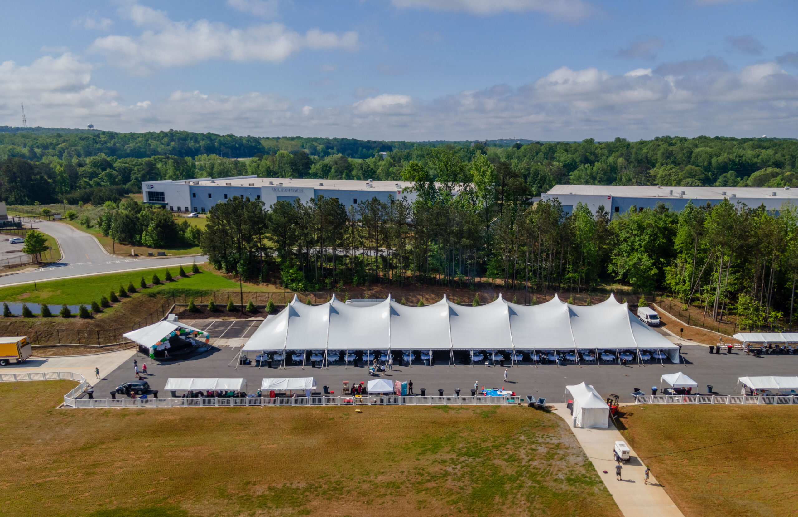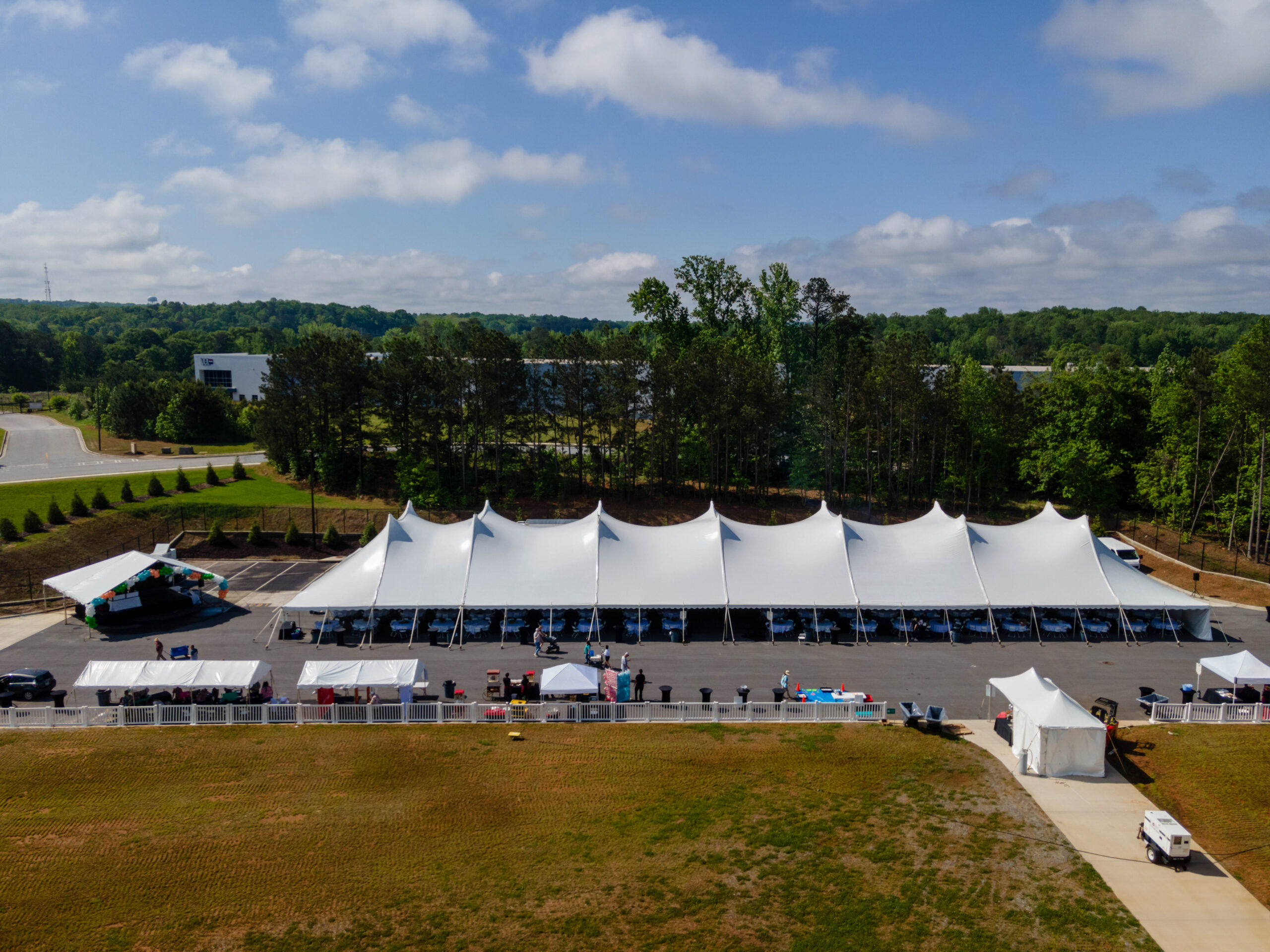 Make a statement at your next outdoor event with our impressive 60′ rope and pole tents. Offering expansive space and classic elegance, these tents are perfect for large gatherings and special occasions. Crafted with premium materials and sturdy poles, our tents provide reliable shelter while exuding charm and sophistication. Discover the perfect tent for your event in our diverse selection today.