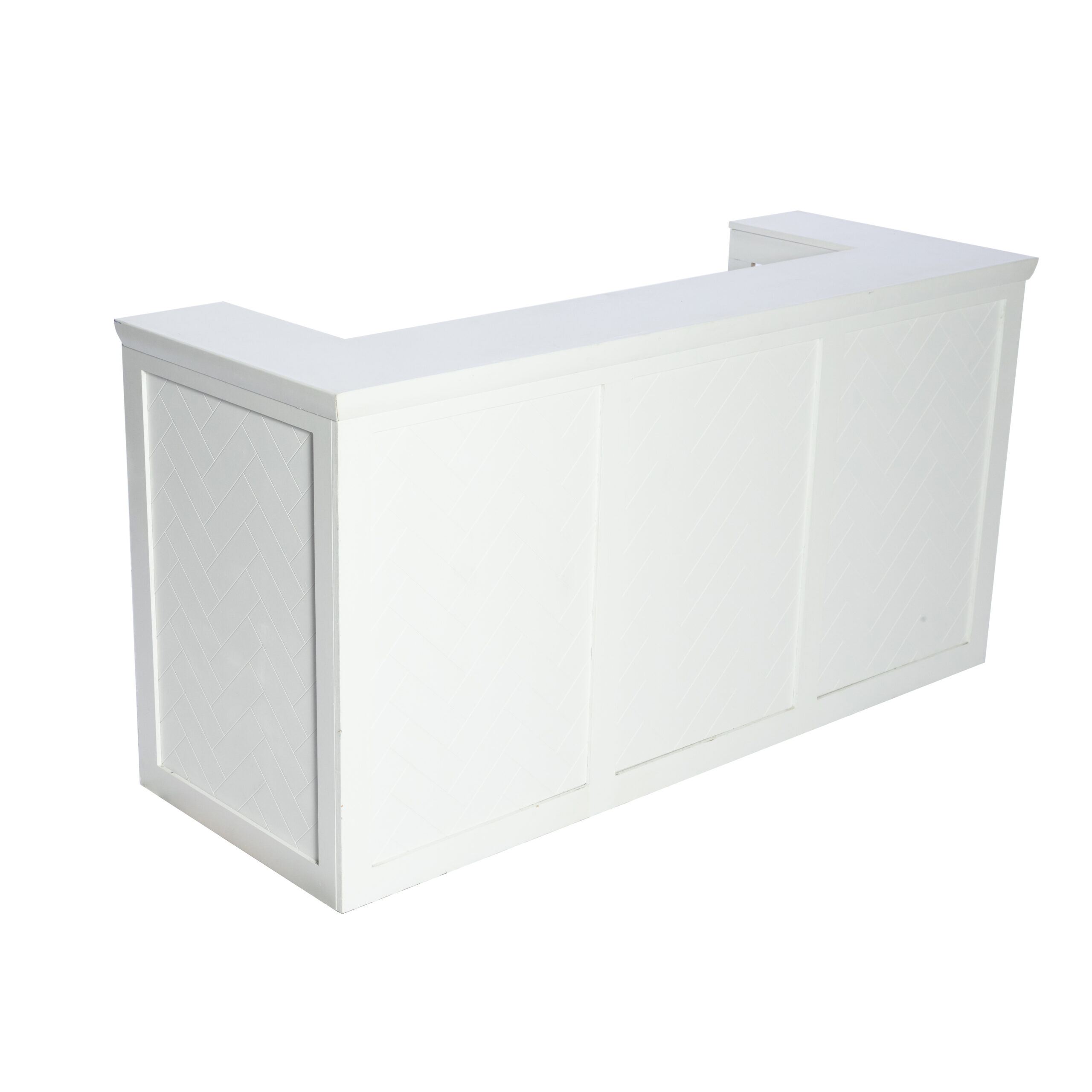 1. For a modern touch to your business space in Atlanta, choose T3 Event Rentals for the elegant White Herringbone Bar. This L-shaped reception desk with minimalist design and vertical panel details is perfect for any occasion. 2. Enhance your North Georgia event with T3 Event Rentals stunning White Herringbone Bar. Its sleek, minimalist design and vertical panels make it an ideal choice for receptions or office spaces. 3. Hosting an event in Forsyth County? T3 Event Rentals offers the chic White Herringbone Bar, featuring a smooth surface and vertical panel details, perfect for creating an upscale atmosphere. 4. Make your Dawsonville event unforgettable with the sophisticated White Herringbone Bar from T3 Event Rentals. Its L-shaped form and minimalist look are perfect for receptions or business settings. 5. Planning a special gathering in Dahlonega? Choose the stylish White Herringbone Bar from T3 Event Rentals, featuring an exquisite design that compliments any professional or festive environment.