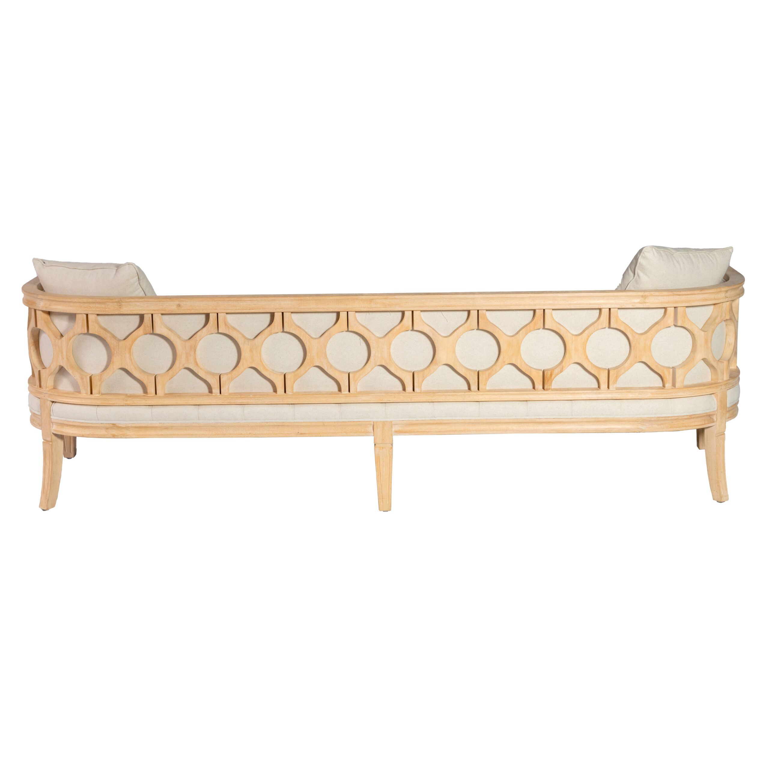 The Lenox Sofa in Ivory brings refined charm and plush comfort to any event or setting. With its tufted upholstery and sculpted natural wood frame, this three-person sofa offers both elegance and support. The unique circular cutout pattern along the curved back and arms adds architectural detail, making it a striking focal point for wedding lounges, cocktail hours, or upscale corporate gatherings. Neutral ivory fabric complements any décor palette, while included pillows provide added comfort. Whether you’re styling a photo shoot or designing a guest lounge, the Lenox Sofa delivers luxury with ease.